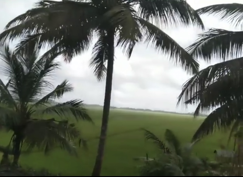 There is a vast area of paddy fields that makes a green cover besides the lake. So much so, that the coconut trees on either side, the green paddy fields make the water also look green!